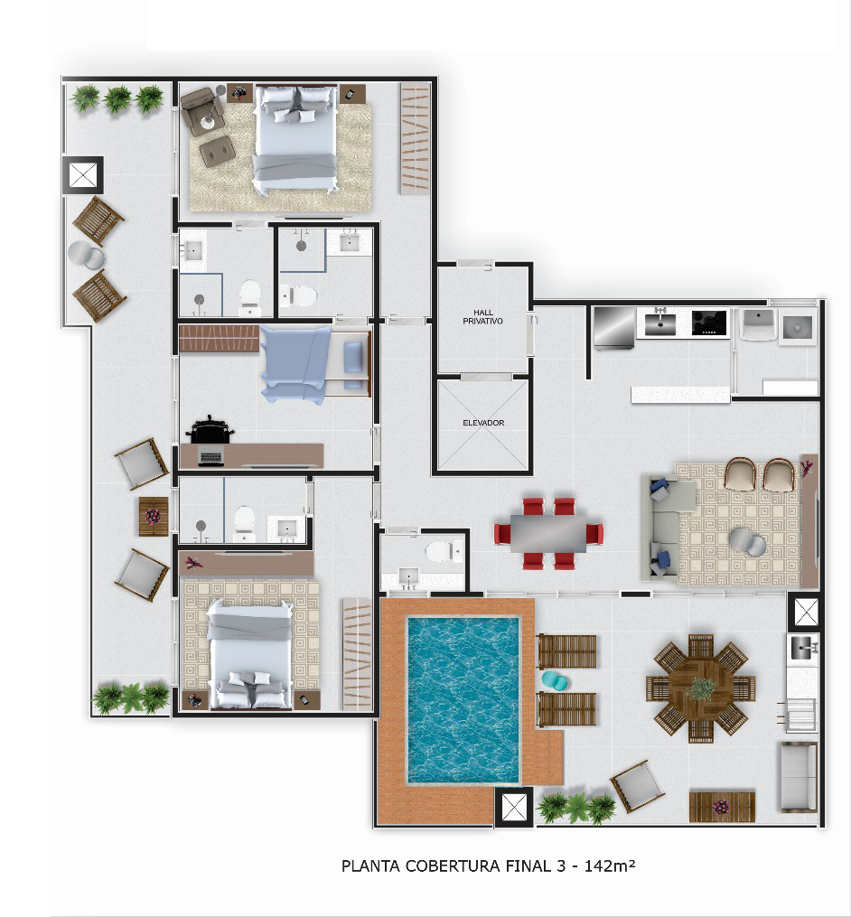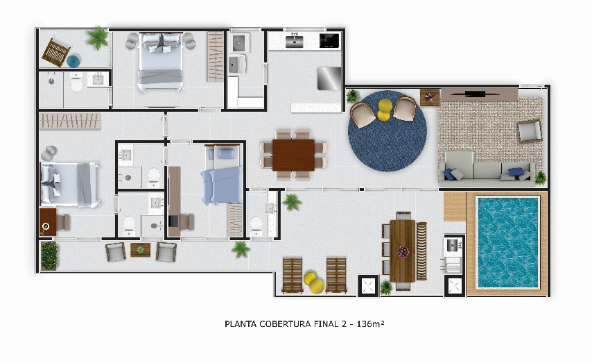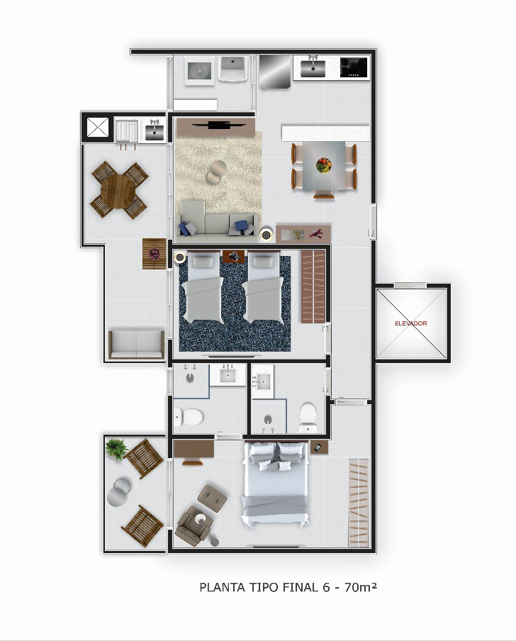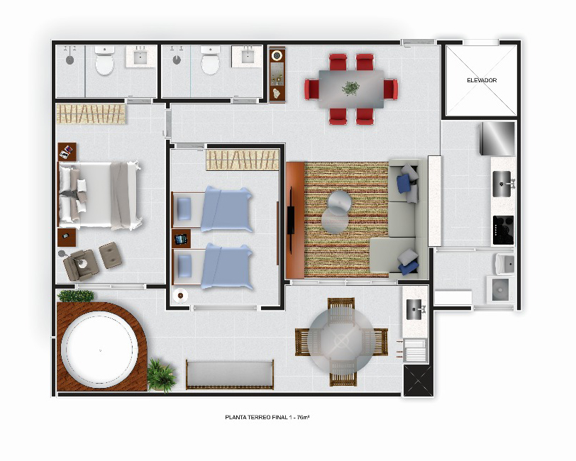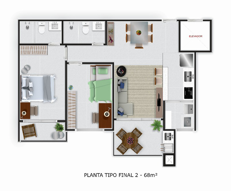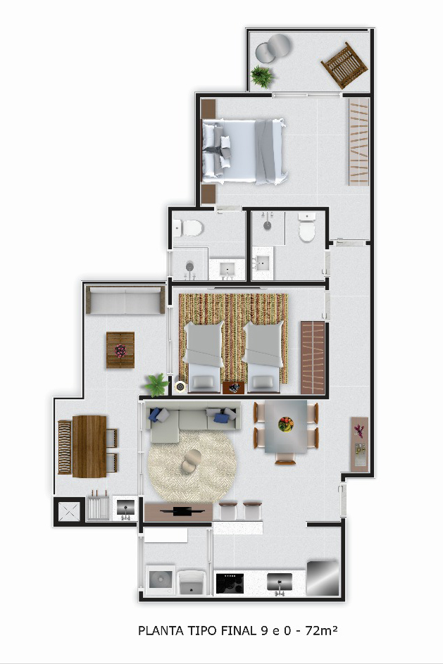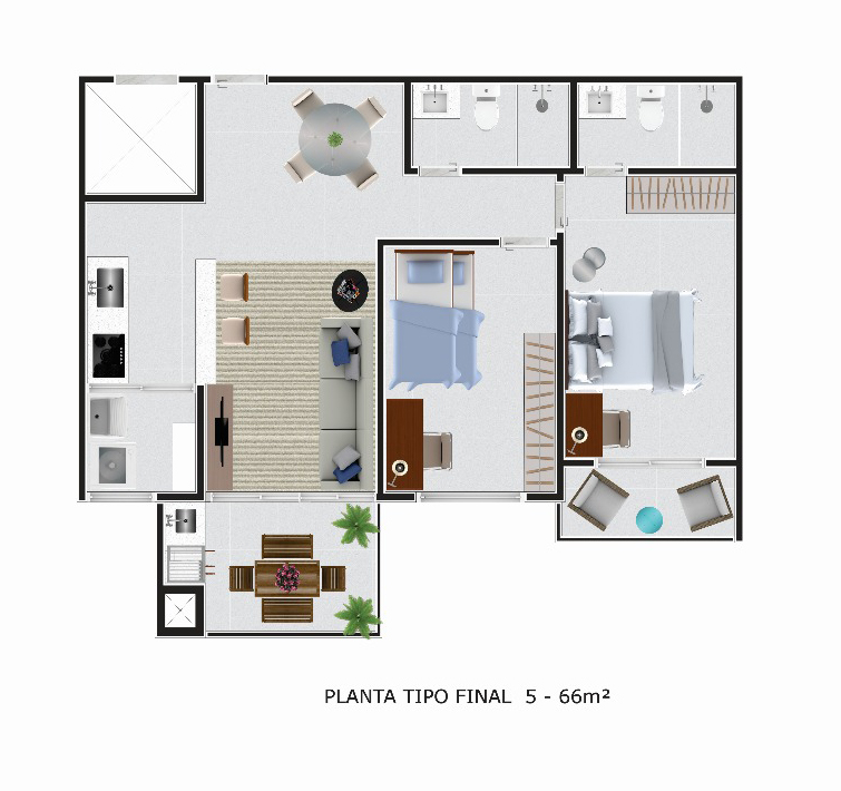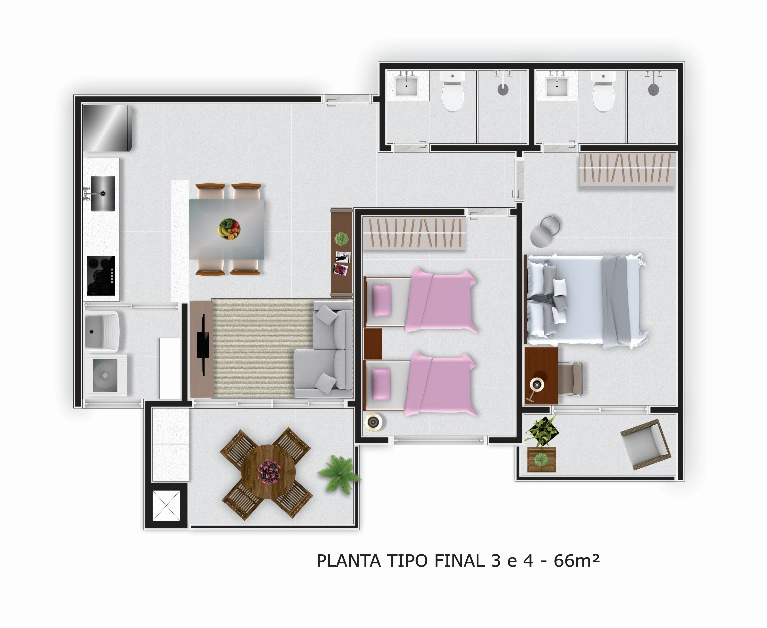 Explore os layouts dos apartamentos e descubra opções planejadas para oferecer conforto, funcionalidade e bem-estar em cada detalhe.